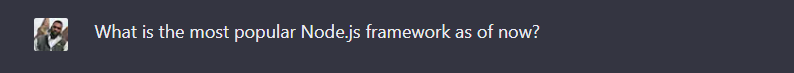 Seems like a reasonable response. Lets use Node.js, to see if we can interact with the database. Before we jump into Node.js, it's good to point out here that a lot of open source projects are wrapped in something we call “frameworks.” This is a fancy word for making this a bit easier to get started. Frameworks are exactly that, they are scaffolding or templates to make it easy to get started with certain technologies. There is likely a framework for all technologies at each implementation layer. Since frameworks are built “on top of” base implementations you can still use the technology that's “underneath” along with the framework in most cases. Lets ask ChatGPT what are some popular frameworks for Node.js..